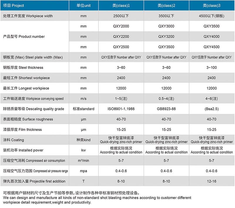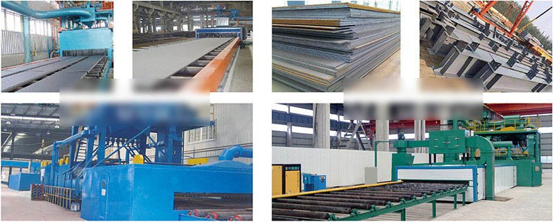 鋼材預(yù)處理線工藝是指鋼材在加工前(即原材料狀態(tài))進(jìn)行表面拋丸除銹并涂上一層保護(hù)底漆的加工工藝。鋼材經(jīng)過預(yù)處理可以提高機(jī)械產(chǎn)品和金屬構(gòu)件的抗腐蝕能力,提高鋼板的抗疲勞性能,延長(zhǎng)其使用壽命;同時(shí)還可以優(yōu)化鋼材表面工藝制作狀態(tài),有利于數(shù)控切割機(jī)下料和精密落料。此外,由于加工前鋼材形狀比較規(guī)則,有利于機(jī)械除銹和自動(dòng)化噴漆,因此采用鋼材預(yù)處理可大大提高清理工作的效率,減輕清理工作的勞動(dòng)強(qiáng)度和對(duì)環(huán)境的污染。