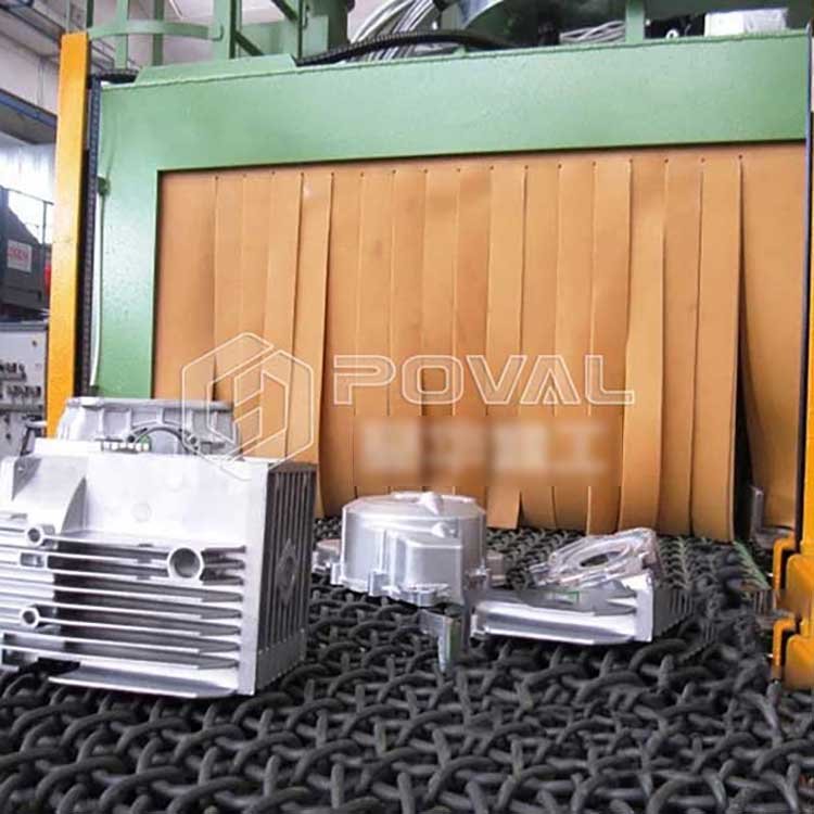 鋁模板是近幾年發(fā)展勢(shì)頭迅猛的一種新型模板支撐系統(tǒng)。鋁模板的優(yōu)勢(shì)是使用鋁合金模板澆筑的混凝土觀感好、質(zhì)量高。由于模板采用鋁合金材料技術(shù)制造而成,其表面非常光滑、平整,這就決定了使用鋁合金模板技術(shù)澆筑好的混凝土表面非常平整、觀感好。所以對(duì)于鋁模板的表面清理要格外小心,適合使用網(wǎng)帶式拋丸機(jī)。網(wǎng)帶式拋丸機(jī)主要用于薄壁件的表面清理強(qiáng)化,具有連續(xù)性好、清理效率高、變形小、無地坑等特點(diǎn)。